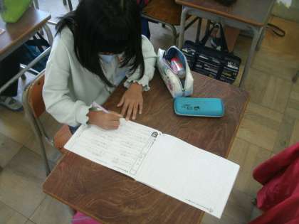 漢字ワークを使って、確かめテストに取り組んでいます。