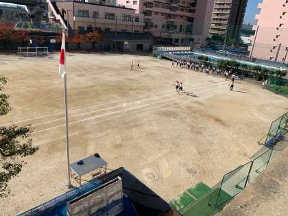 ふと運動場をのぞいてみると6年生がスポーツテストの50m走を行なっていました。