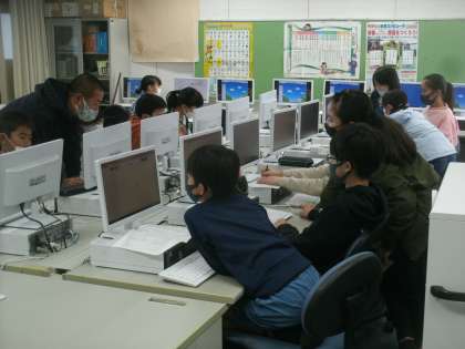 国語科学習の様子です。「和の文化を受け継ぐ」という単元の学習に取り組んでいます。明日の発表に向けて、グループごとに「和の文化」について情報を集めています。