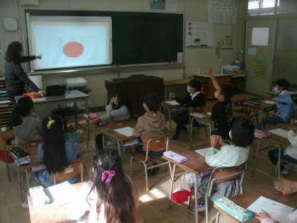 生活科学習の様子です。保護者の方にゲストティーチャーとして来ていただき、「マレーシア」について色々なお話をして頂きました。