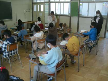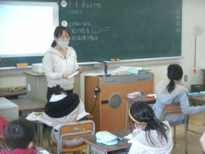 算数科学習の様子です。習熟度別少人数学習で進めています。大阪市教育委員会指導部より学力向上推進指導員の大野節子先生に来ていただきました。指導力向上に向けて、指導助言をいただきました。