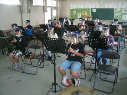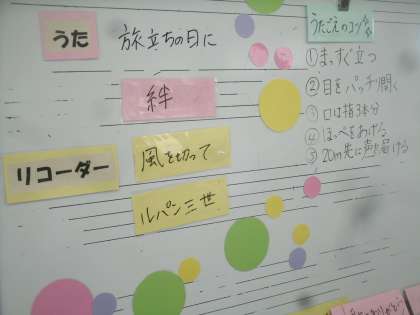 リコーダーで「風を切って」の合奏をしています。