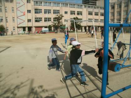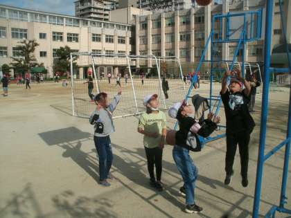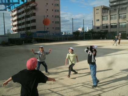 3年生がバスケットボールをして遊んでいました。3年生ですが、とても上手なんですよ。