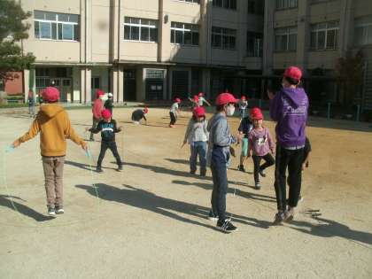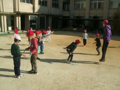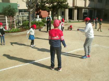 「なわとび教え隊」(1) 公開日 2020/12/07 更新日 2020/12/07 お知らせ 15分休みに6年生が1年生になわとびの跳び方や片付ける時の結び方などを優しく教えてくれていました。 いいね(0)