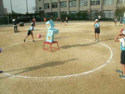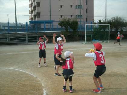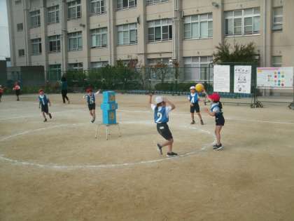 昨日実施された体育科研究授業(シュートゲーム)の様子です。チーム練習をしています。