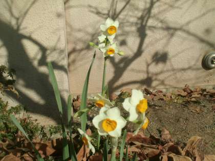 明るい日差しの中、スイセンが咲いていました。