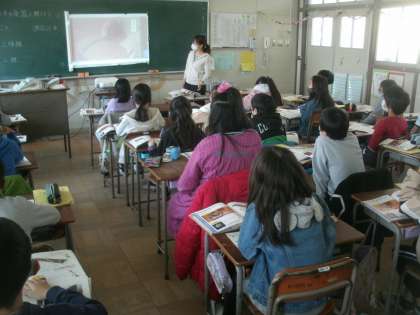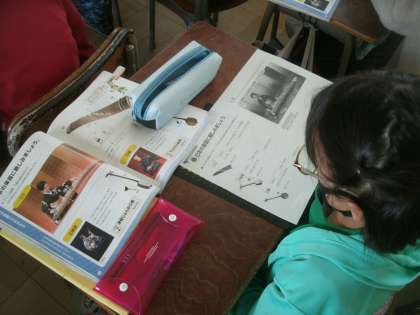 音楽科学習の様子です。今日は「日本の楽器に親しもう」です。琴の音色を鑑賞しています。