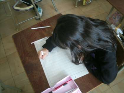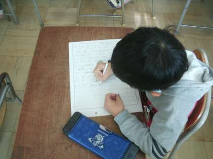 国語科学習の様子です。今日は「作文」を書いています。どの子も集中して一生懸命書いています。