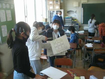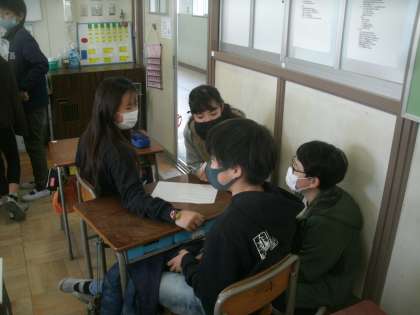 グループに分かれて、それぞれで明日の「お楽しみ会」に向けての準備や打ち合わせをしています。明日、みんなで楽しい時間が過ごせるといいですね。