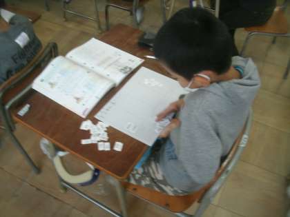 算数科学習の様子です。今日の学習課題は「1000より大きい数をしらべよう」です。