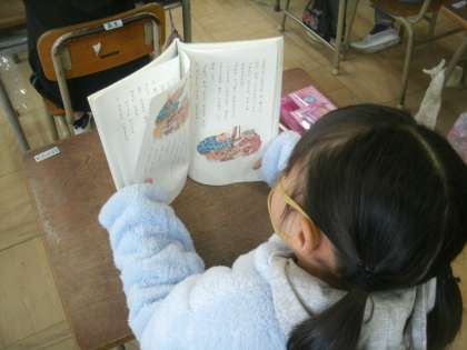 国語科学習の様子です。3学期の国語学習は「かさこじぞう」で始まります。