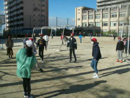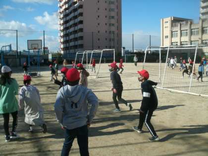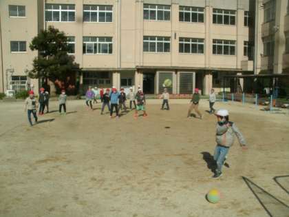 チャイムが鳴ると、子ども達が運動場に飛び出してきました。