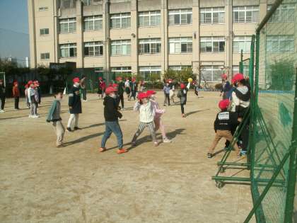 「わくわく遊ぼう週間(1日目)」 (1) 公開日 2021/01/14 更新日 2021/01/14 お知らせ 今日から「わくわく遊ぼう週間」が始まりました。昼休みにたて割りグループで一緒に遊びます。今日は赤・緑グループが「ころがしドッジボール」「だるまさんが転んだ」で遊びました。 いいね(0)