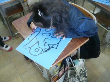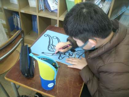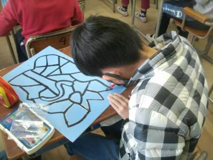 図画工作科学習の様子です。彫刻刀を使って木版画に取り組んでいます。