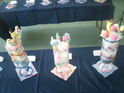 多目的室で「展覧会」を実施しています。残念ながら新型コロナウイルス感染症感染予防対策に関する大阪市教育委員会の指示で保護者の皆さんに展覧会にお越し頂けなくなりました。写真ではなかなかわかりにくいとは思うのですが、子ども達の頑張った作品を見て頂ければと思います。