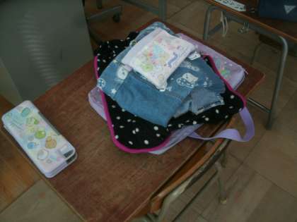 体育科学習の時間は当然ですが、教室には誰もいません。残っているのは机と椅子。そして着替えた服です。これを見ると、1年生の確かな成長を見ることができます。入学当初、1年生の子ども達が着替えた後の教室をのぞくと、脱いだ服をただ机の上にポイと置いてあるだけでした。時には、床の上にまるで脱皮したかようにズボンが脱いであったりしていました。まだまだ学級全体で100点満点というわけにはいかないけれど、80点位の合格点はあげれるのではないですか。1年生の子ども達はしっかり成長してくれています。