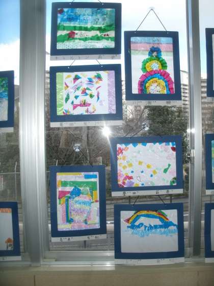 4年生は「光のさしこむ絵」です。ステンドグラスのようですね。