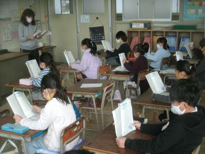 学習の様子 2年生 公開日 2021/01/20 更新日 2021/01/20 お知らせ 国語科学習の様子です。「かさこじぞう」を学習しています。新しい段落に入る前に、リレー読みで音読しています。みんな、両手で教科書をしっかり持って、音読のときの良い姿勢で取り組んでいます。 いいね(0)