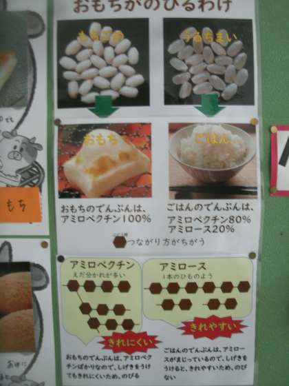 「おもち だいすき」 公開日 2021/01/20 更新日 2021/01/20 お知らせ 給食室横の掲示板に「おもち大好き」という掲示がありました。子ども達はお正月にお雑煮で食べる機会が多かったのではないでしょうか。お雑煮は地方によって色々と違います。大阪は白みそでお餅以外にニンジンやダイコンなどの野菜が入ったものですね。私は父親の故郷が高知なので、幼い頃からお餅と鶏肉と水菜だけのおすまし雑煮しか食べたことがありません。金塚の子ども達はどんなお雑煮を食べたのかなぁ。 いいね(0)