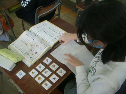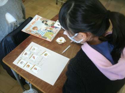 英語科学習の様子です。今日は食べ物カードを使って「ビンゴゲーム」で楽しんでいました。