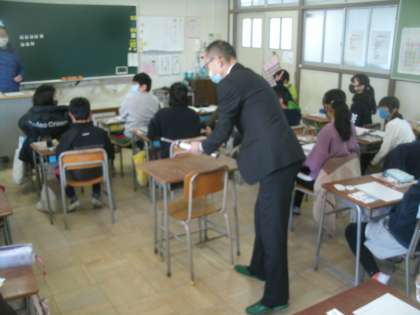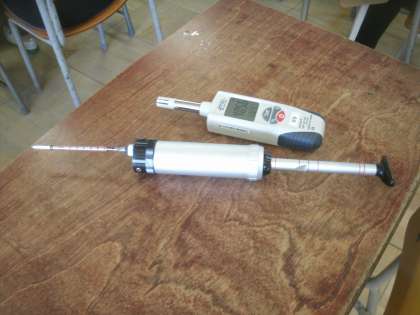 学校薬剤師の前田健輔先生に来ていただき、5年生の教室を使って「空気検査」を実施しました。特に大きな問題はありませんでしたが、30分に1回の換気がとても大切だいうことでした。