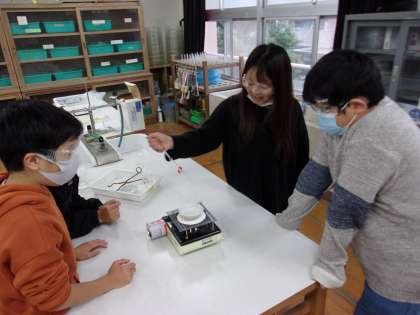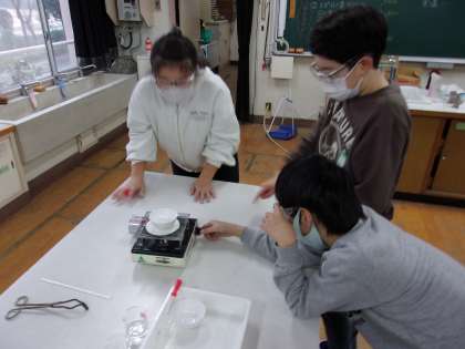 学習の様子 5年生 公開日 2021/01/22 更新日 2021/01/22 お知らせ 理科学習の様子です。理科室で「水よう液の性質」について実験に取り組んでいます。今日の学習課題は「水よう液の水をじょう発させるととけているものを取り出せるのだろうか」です。食塩とミョウバンの水よう液を使って実験しています。 いいね(0)