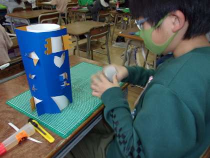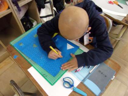図画工作科学習の様子です。今日は「まどをひらいて」です。カッターナイフを使っていますね。