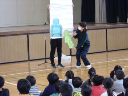 児童朝会が終わった後、教室を回っていた時のことです。2年生の子ども達が担任の古井先生の「今日の校長先生のお話はどんなお話でしたか?」という問いに対して、私の話した内容をしっかり答えてくれていました。低学年には少し難しいお話だったかもしれませんが、一生懸命聞いてくれていたんですね。本当に嬉しく思いました。