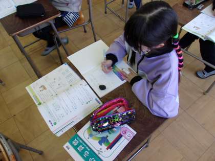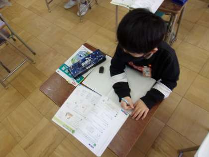 算数科学習の様子です。習熟度別少人数学習で進めています。今日は「たしかめよう」の学習です。
