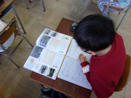社会科学習の様子です。今日の学習課題は「大阪市ができたころのようすを調べよう」です。