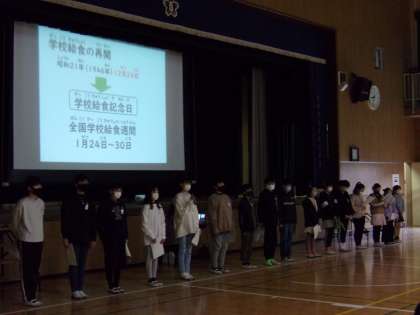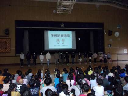 木曜日は児童集会の日です。健康委員会から「給食週間」についての発表がありました。