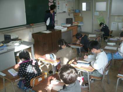 生活科学習の様子です。学校の中の自然をしっかり観察していますね。