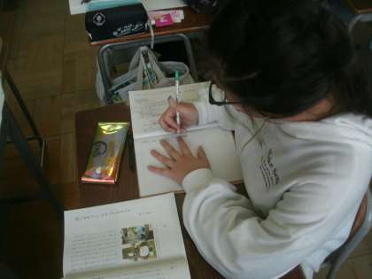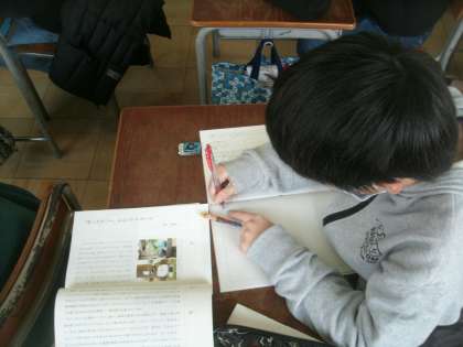 国語科学習の様子です。説明文『「弱いロボット」だからできること』の学習に取り組んでいます。