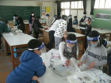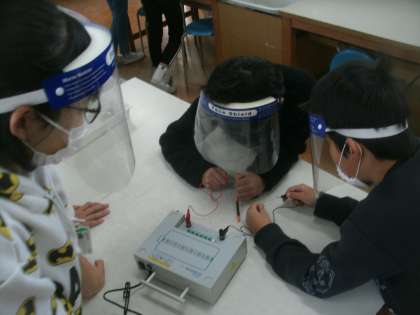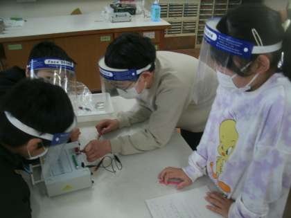 理科室で実験に取り組みました。今日の学習課題は「電磁石をつくり、ゼムクリップを使って電磁石のはたらきを調べる」です。以前は6年生で学習していた「電磁石」の学習を5年生で学ぶことになりました。