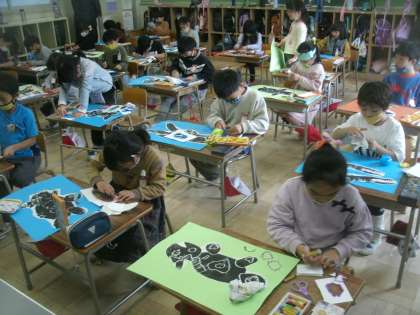 紙版画で自分の考えた「恐竜」を作りました。