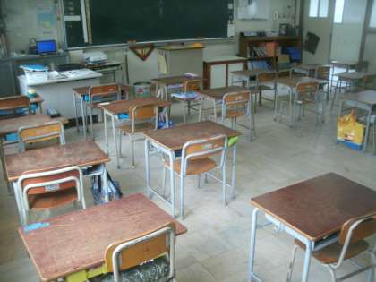 「参上! 机といすを整えさせていただきました。校長先生。」