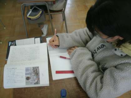 国語科学習の様子です。今日は「プロフェッショナルたち」という単元です。この文章を読むと、私自身、自戒の意味も込めて、誰もが本当の意味でのプロフェッショナルになれるというわけではないと思わされます。