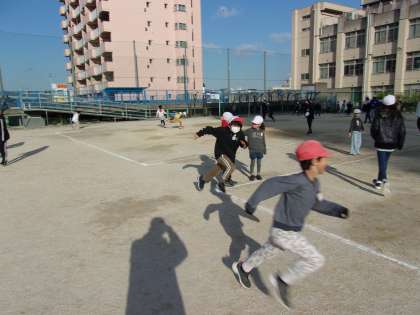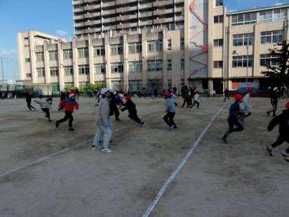 (写真1)6年生の鬼が放たれた。