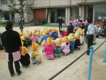 今日、地震・津波を想定した避難訓練で山王保育所から可愛い子ども達が金塚小学校にやってきました。