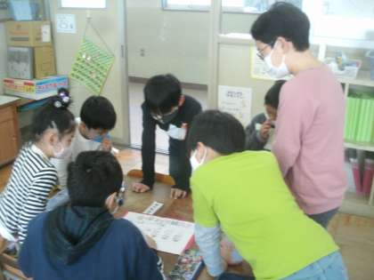 「金塚まつり」に向けて、わくわくグループで活動をしました。6年生が中心になって話を進めていきます。