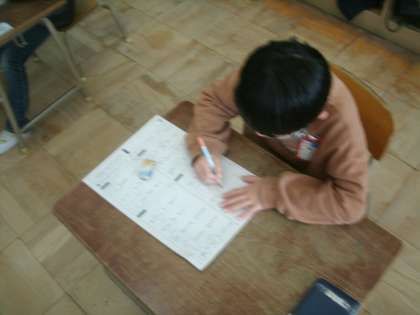 漢字プリントに取り組んでいました。1年生で習った漢字は80字。2年生になると一気に増えて160字。それぞれの学年でしっかり漢字を書けるようにしておかないと大変です。家庭学習の一つとして「読み・書き・計算」に取り組んでいただければ、相乗効果でお子さんの学力は伸びていきます。1日に漢字5つを5回ずつ書くことと計算(たし算・引き算)を10問するだけでずいぶん違います。学校ではこれからも指導法の工夫改善を図り、子ども達の見える学力を向上させるために努力いたしますので、家庭学習の取り組みにもご理解ご協力をお願いいたします。