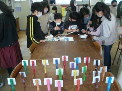 「金塚まつり」の様子です。6年1組のアトラクションは「輪ゴム鉄砲」です。