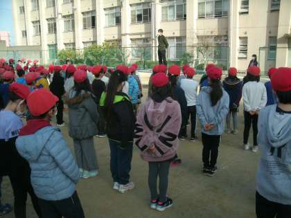 月曜日は「児童朝会」があります。気持ちよく晴れた空の下、運動場で行いました。今日は先週にあった「金塚まつり」のお話をして、子ども達の頑張りを誉めました。