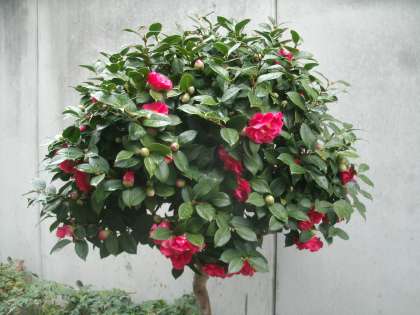 給食室前のツバキの花が一気に開きました。