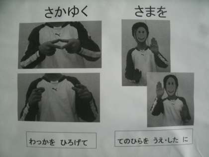 「手話で歌う校歌」 公開日 2021/03/01 更新日 2021/03/01 お知らせ 金塚小学校は始業式や終業式などで校歌を歌う時、6年生が前に出て手話で校歌を歌うことが伝統となっています。 今年度は新型コロナウイルス感染症感染予防対策として校歌を全員で歌えなくなってしまいました。そこで来年度から全児童が手話で校歌が歌えるように練習を始めています。給食室横の掲示板にも手話で歌う校歌を掲示しました。土曜授業の学習参観で学校に来られた時に是非見てくださいね。 いいね(0)