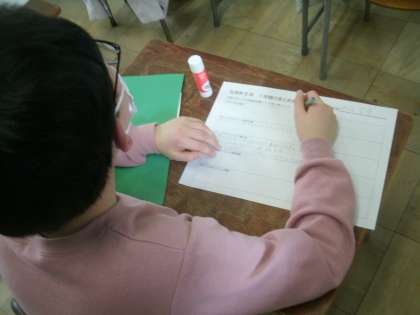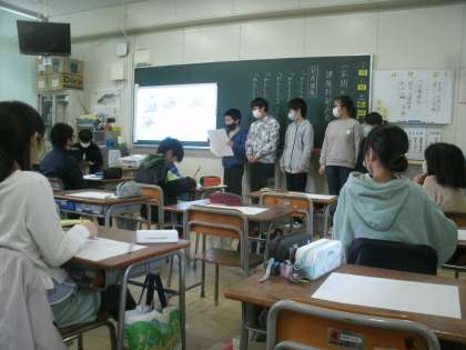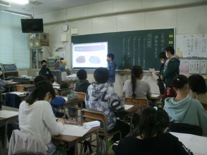 学習参観の様子です。グループに分かれて、ICT機器を活用して社会科の研究発表をしました。