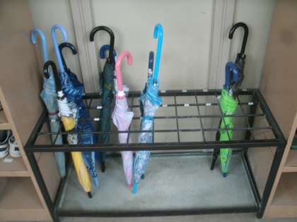 全ての傘がきれいに巻かれて傘立てに立てられています。今日も児童朝会が終わった後、学習している子ども達の姿を見るために教室を回りました。その時の傘立ての様子です。