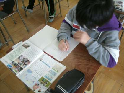 社会科学習の様子です。「国際協力の分野で活躍する人々」という単元の学習です。「ODA(政府開発援助)」や「青年海外協力隊」のことについて学んでいます。この中から「青年海外協力隊」に参加する子どもも出てくるかもしれませんね。
