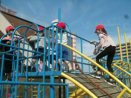遊具のある第2運動場は低学年の子ども達に大人気です。