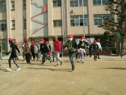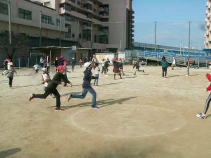 「ふえおに」で楽しみました。 (写真1)「6年生鬼」が放たれた。
